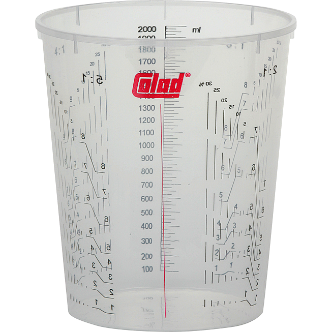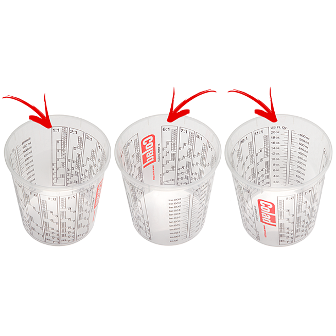 Original COLAD Mischbehälter mit gut lesbaren Skalen für perfekte Mischergebnisse. Mit insgesamt 11 Mischungsverhältnissen bieten die Colad Mischbecher das Optimum an Mischungsverhältnisse für nahezu jede Art von Farbe. Dank der unterschiedlichen Mischungsverhältnisse in Verbindung mit dem flachen Boden des Bechers garantieren die Colad Mischbecher ein optimales Anmischen von Farben und eine minimale Restmenge an Farbe.
