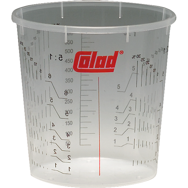 Original COLAD Mischbehälter mit gut lesbaren Skalen für perfekte Mischergebnisse. Mit insgesamt 11 Mischungsverhältnissen bieten die Colad Mischbecher das Optimum an Mischungsverhältnisse für nahezu jede Art von Farbe. Dank der unterschiedlichen Mischungsverhältnisse in Verbindung mit dem flachen Boden des Bechers garantieren die Colad Mischbecher ein optimales Anmischen von Farben und eine minimale Restmenge an Farbe.