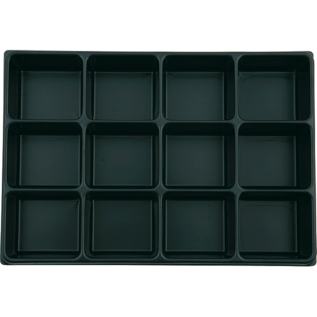 12-fach Inlett mit gleichgroßen Kästchen zur Befüllung mit Kleinmaterialien. Genau passend für Kunststoff-Sortimentskasten.