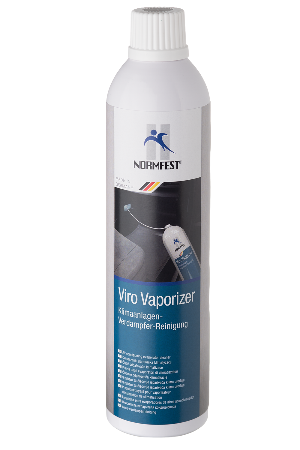 Viro Vaporizer Normfest est utilisé directement à l’évaporateur pour protéger efficacement contre les bactéries, virus et les mauvaises odeurs dans l’habitacle du véhicule. Avec le temps, une couche superficielle de saleté s’accumule sur les ailettes de refroidissement de l’évaporateur, qui sert de terrain de reproduction optimal pour les micro-organismes tels que les bactéries et les moisissures. La combinaison d’ingrédients actifs dans le nettoyeur de climatisation élimine ce biofilm à forte odeur d’une part, et d’autre part, il tue efficacement les micro-organismes restants.